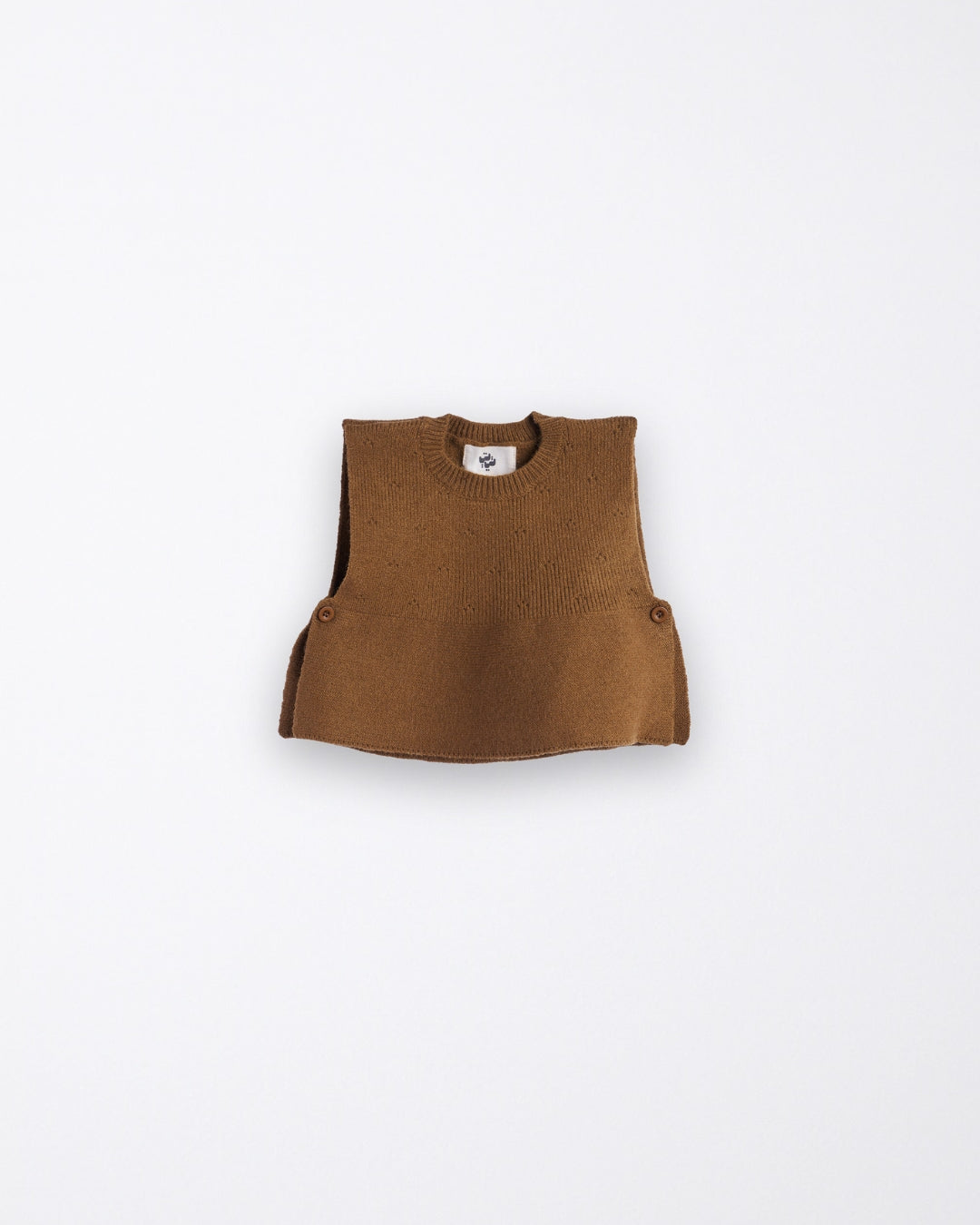Expertly crafted in a classic knit design, this vest is perfect for adding warmth and style to any outfit. With buttons on the side for added detail and easy wear, it comes in two versatile colors, brown and olive.